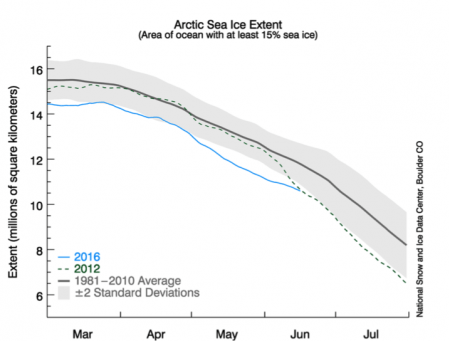 A second, albeit less likely, vagrancy route for this Ancient Murrelet was for it to travel through the opening Arctic ocean routes in the north. This year Arctic Sea Ice Extent is at a record low.