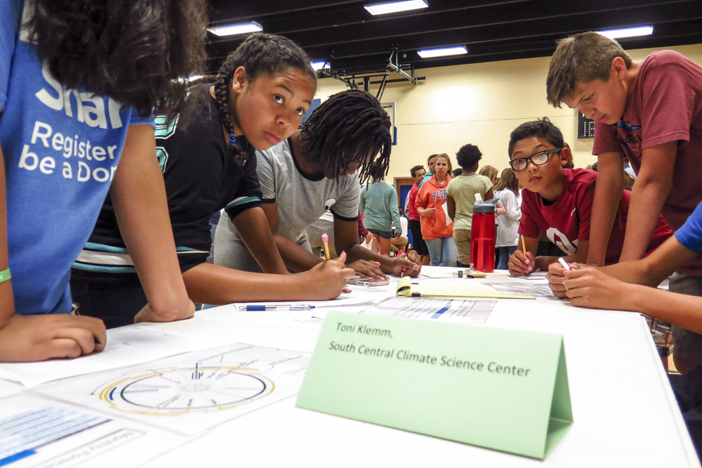 A few weeks ago I was invited to a middle school in Norman, Oklahoma, where I live, to talk about climate change. Laura Vaughn, the school’s science teacher, and her social studies colleague had organized a two-hour guided inquiry lecture for their 280 seventh-graders, investigating with little guidance from teachers how climate change affects our lives and what we can do about it. Eleven other researchers and city employees and I each manned a table in the school’s gym where we set up demonstrations to help make climate science concrete for the student. For example, we showed how CO2 increases air temperature and causes ocean acidification, what tree rings can tell us about the earth’s past climate, and how clogged up storm water runoffs can increase flood risk. I wanted to explain how climate extremes like drought, flood, or heat impact our agriculture, what role climate change plays in all this, and what farmers can do to maintain a good harvest. Or, I should say, that was the plan.