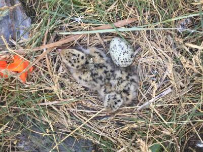 Next I learned how to do a productivity study, the second area of our research. Each day, we went to designated nests in four fenced-in areas around the island, weighing and measuring the wing chord length of each tern chick and banded newly hatched chicks. We also monitored black guillemot burrows nestled in the rocks around the perimeter of the island, weighing and marking recently hatched chicks by painting their toenails sparkling purple and turquoise (I can now add seabird manicurist to my resume). Productivity surveys took 2-3 hours each day, and was one of my favorite activities because we got to explore the whole island.
