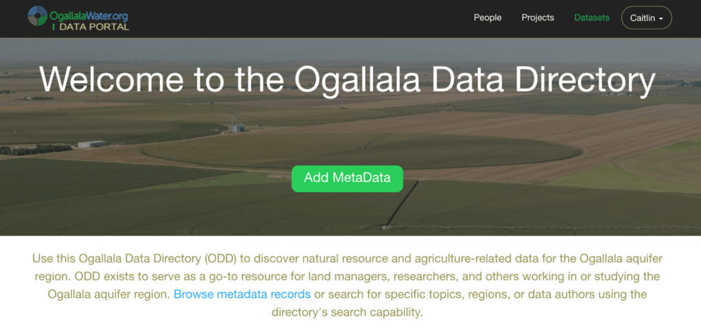 Due to its broad importance to human and natural ecosystems and the economy of the region, an abundance of data have been collected relevant to the Ogallala and the systems it underlies. However, there are challenges to working with these data: 1) Data needed to support long term longevity of ecosystems and economic systems can be difficult to efficiently locate and access, 2) Depth and breadth of available data are unclear due to the disparate nature of datasets, and 3) Disparate datasets also make it difficult to identify gaps in current knowledge. To address some of these challenges, a team from the South Central Climate Adaptation Science Center and Colorado State University developed a comprehensive web site to search, download, and display the disparate datasets associated with water in this region. It makes use of metadata records to provide location information of datasets location across the internet, rather than requiring that all datasets be located within the Directory. This is similar to the function of data.gov, which provides access information for datasets, rather than datasets themselves. The Ogallala Data Directory can be accessed online without an account, but account owners have access to additional features beyond searching, including the ability to upload or edit their own metadata records. Quality control is provided by the developers of the Data Directory to ensure that datasets are not duplicate records or bot-created records and that all necessary metadata have been provided.